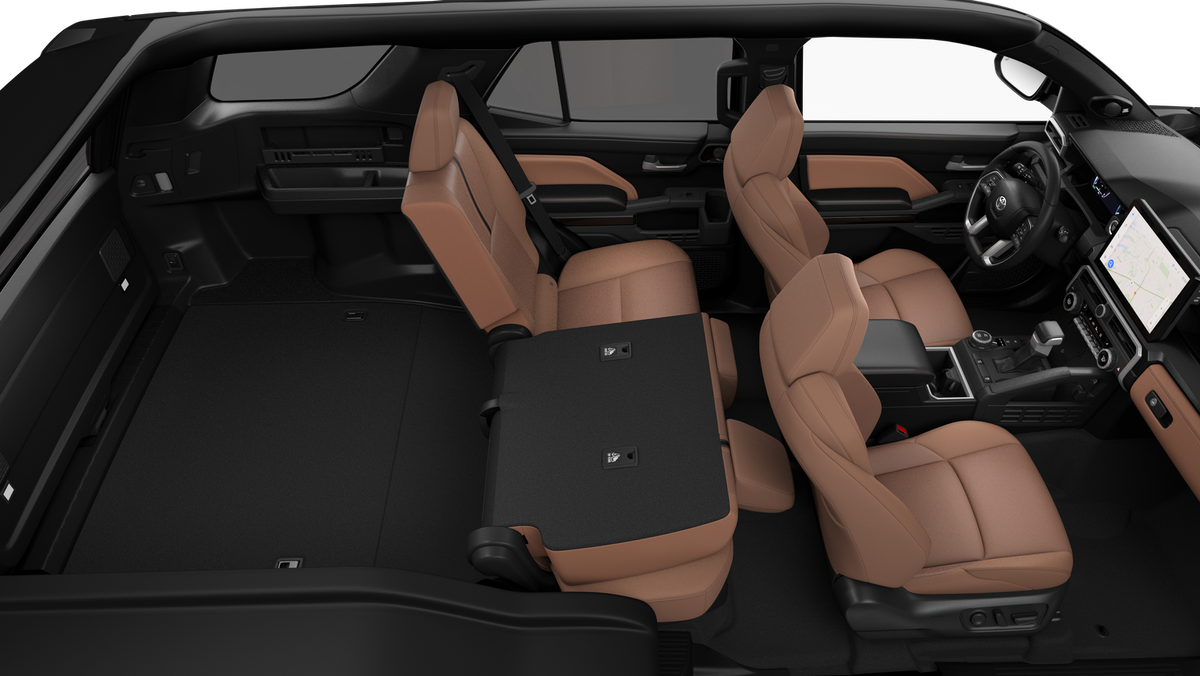- 60/40 split, reclining and tumble-folding second-row seat with center armrest and cup holders