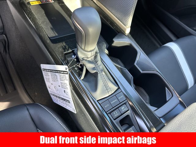 • 6 Speakers, AM/FM radio: SiriusXM, Radio: 8" Toyota Audio Multimedia, Air Conditioning, Automatic temperature control, Front dual zone A/C, Power driver seat, Power steering, Power windows, Remote keyless entry, Steering wheel mounted audio controls, Four wheel independent suspension, Speed-sensing steering, Traction control, ABS brakes, Dual front side impact airbags, Emergency communication system: Safety Connect (5-year trial), Low tire pressure warning, Brake assist, Electronic Stability Control, Exterior Parking Camera Rear, Auto High-beam Headlights, Fully automatic headlights, Panic alarm, Security system, Active Cruise Control, Heated door mirrors, Power door mirrors, Spoiler, Turn signal indicator mirrors, Apple CarPlay/Android Auto, Illuminated entry, Leather Shift Knob, Leather steering wheel, Front Bucket Seats, SofTex and Fabric Seat Trim, Alloy wheels, Wheels: 18" Multi-Spoke Black-Finished Alloy