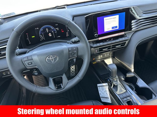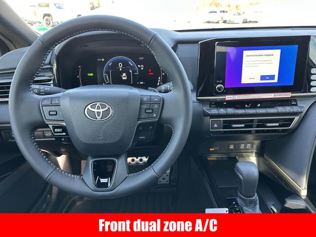 Inside, the Camry SE pampers you with premium amenities, including dual-zone automatic climate control, a 8" Toyota Audio Multimedia system with Apple CarPlay and Android Auto, and a power-adjustable driver's seat. The SofTex and fabric upholstery adds a touch of luxury, while the leather-wrapped steering wheel and shift knob provide a premium feel.