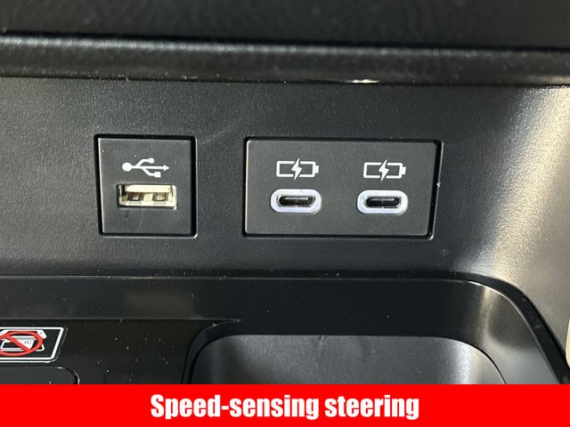 - Five USB ports: one USB-A media port and two USB-C charging ports up front, with one USB-A and one USB-C charging port in the rear