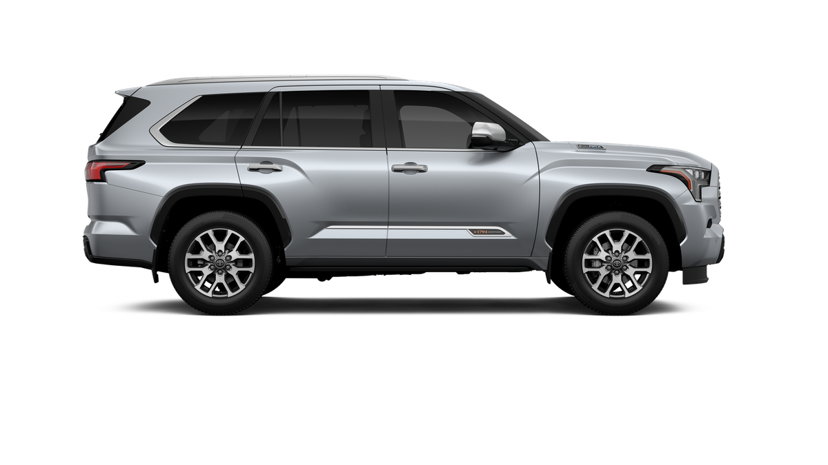 - Bright-chrome "SEQUOIA" rear door badge, chrome "1794 EDITION" door badge and garnish, door handles, window molding and mirror caps; color-keyed tailgate spoiler; black-painted overfenders