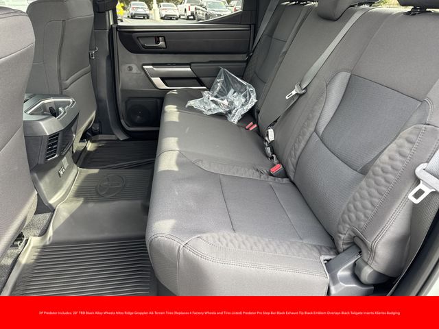 • XP PREDATOR PACKAGE: 20" TRD Black Alloy Wheels, Nitto Ridge Grappler All-Terrain Tires, Predator Pro Step Bar, Black Exhaust Tip, Black Emblem Overlays, Black Tailgate Inserts, XSeries Badging, Wireless Charger Tray
