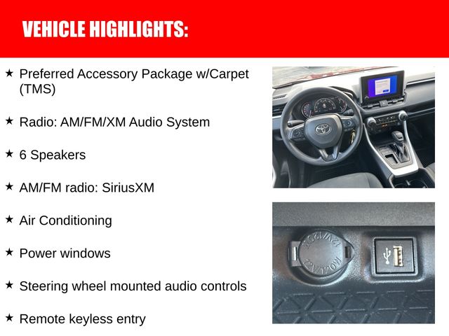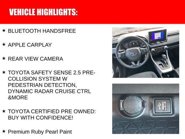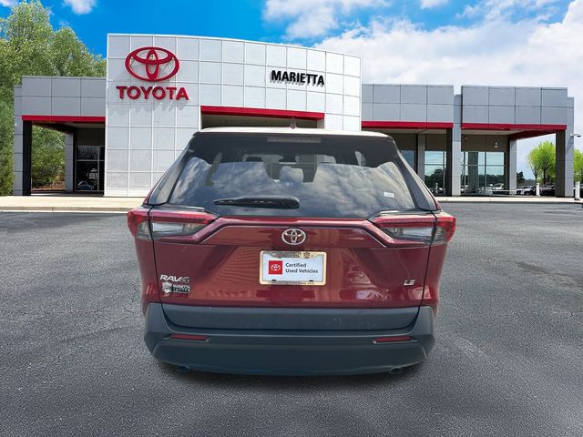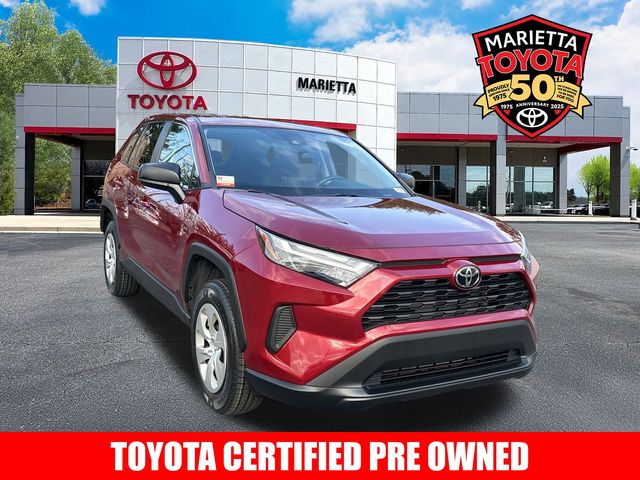 2024 Toyota RAV4 LE BLUETOOTH HANDSFREE, APPLE CARPLAY, REAR VIEW CAMERA, TOYOTA SAFETY SENSE 2.5 PRE-COLLISION SYSTEM W PEDESTRIAN DETECTION, DYNAMIC RADAR CRUISE CTRL &MORE, TOYOTA CERTIFIED PRE OWNED: BUY WITH CONFIDENCE!, Premium Ruby Pearl Paint, Black w/Fabric Seat Trim, 17" Steel Wheels, 6 Speakers, Active Cruise Control, Air Conditioning, All Weather Floor Liners & Cargo Liner (TMS), AM/FM radio: SiriusXM, Auto High-beam Headlights, Brake assist, Bumpers: body-color, Dual front side impact airbags, Electronic Stability Control, Emergency communication system: Safety Connect (10-year trial), Exterior Parking Camera Rear, Fabric Seat Trim, Four wheel independent suspension, Front Bucket Seats, Front reading lights, Illuminated entry, Low tire pressure warning, Outside temperature display, Power door mirrors, Power windows, Preferred Accessory Package w/Carpet (TMS), Radio: AM/FM/XM Audio System, Remote keyless entry, Speed control, Speed-sensing steering, Spoiler, Steering wheel mounted audio controls, Traction control. At Marietta Toyota, we are proud to celebrate 50 years of being a family-owned and operated business! Since 1975, we've been committed to providing a safe, transparent, and enjoyable car-buying experience. We treat every customer like family because, at Marietta Toyota, you are family and a valued neighbor! Every new Toyota comes with our Nationwide Lifetime Powertrain Warranty, providing you with unlimited time and mileage coverage at no extra cost, and valid at over 2,500 service centers nationwide. This is just one of the many ways we show our commitment to your peace of mind. Call us today at (770) 422-1490 and experience the Marietta Toyota difference! Certified. Clean CARFAX.
